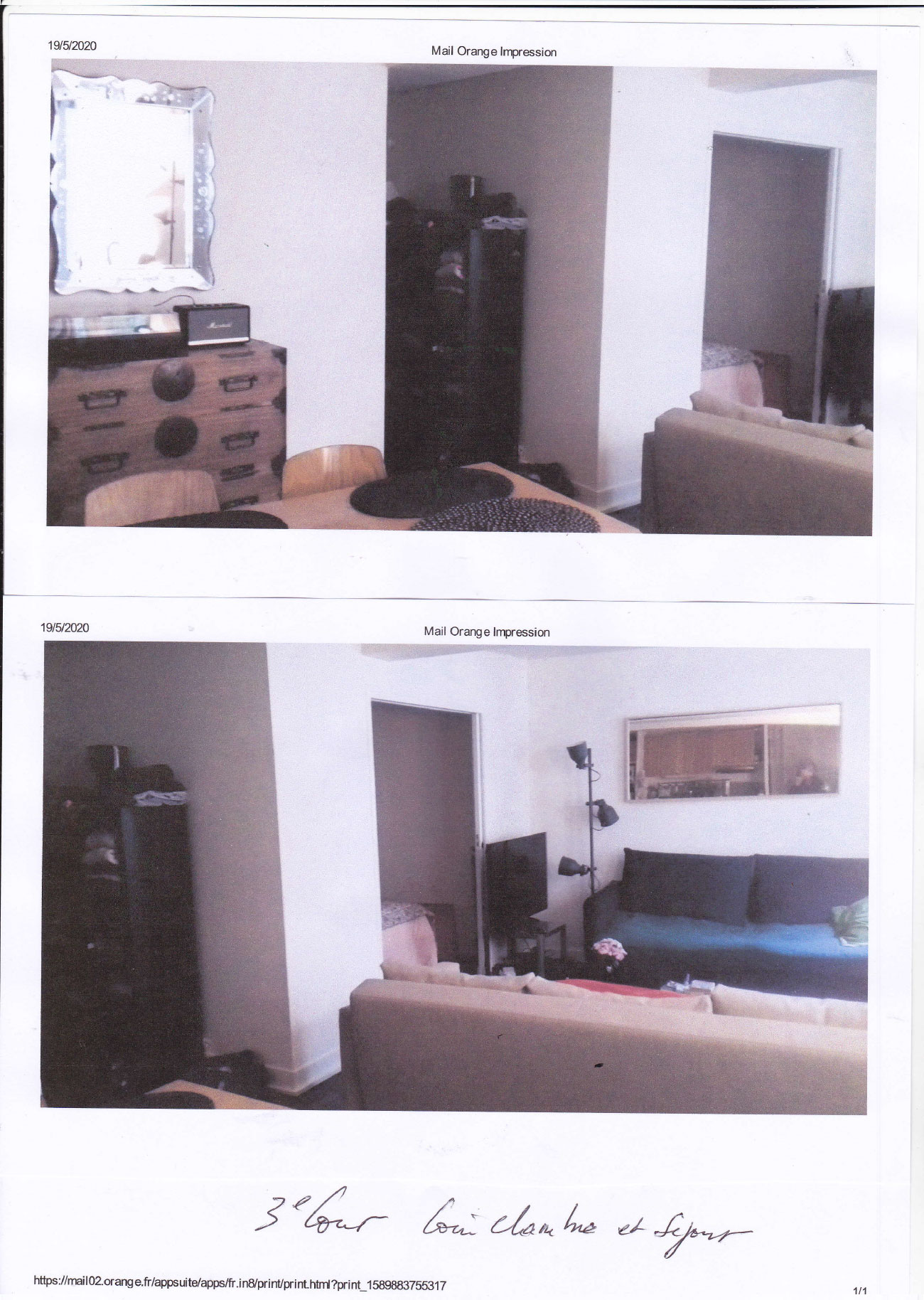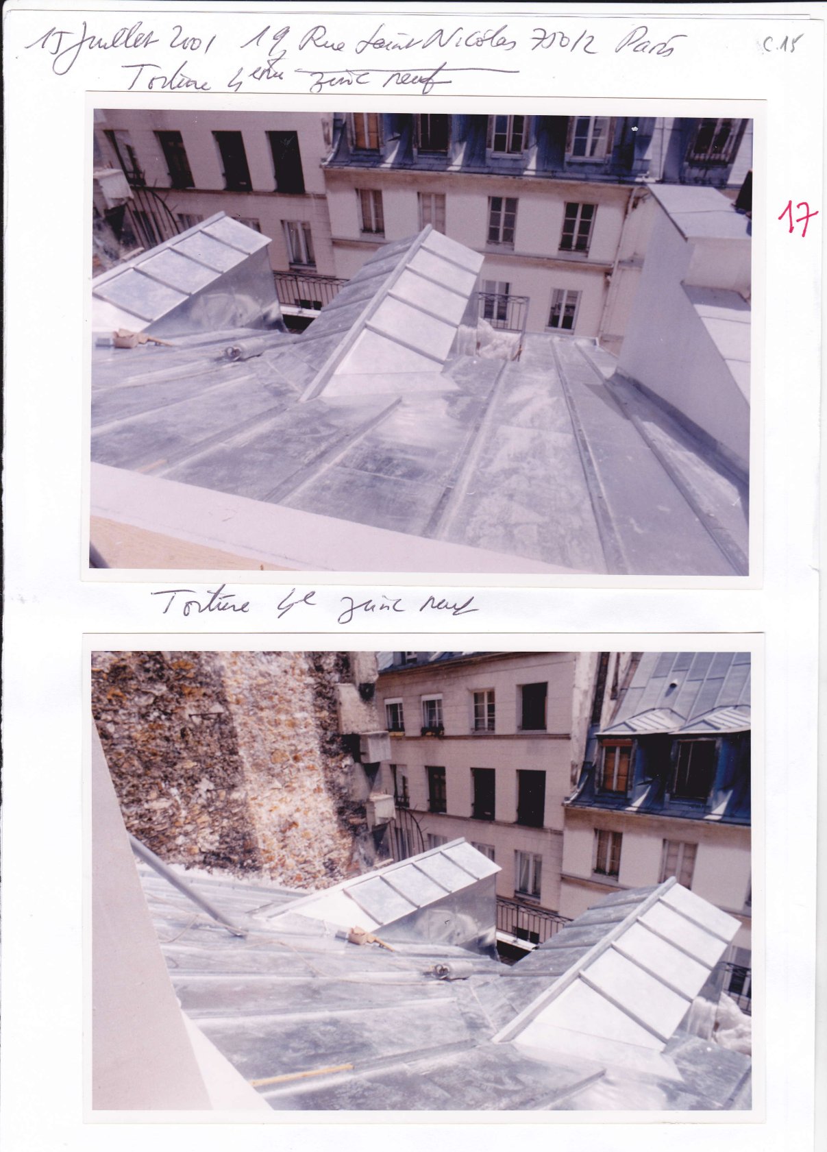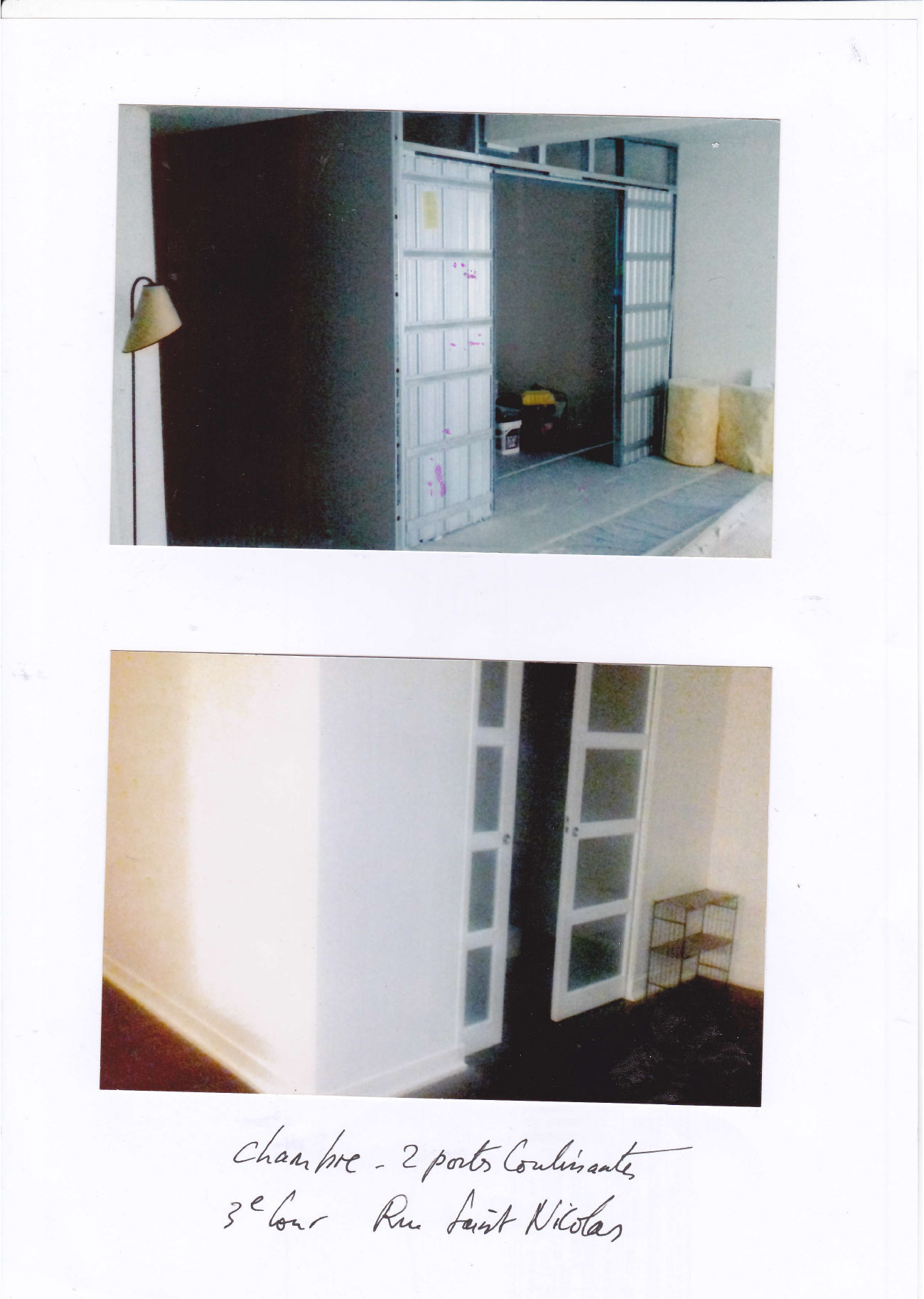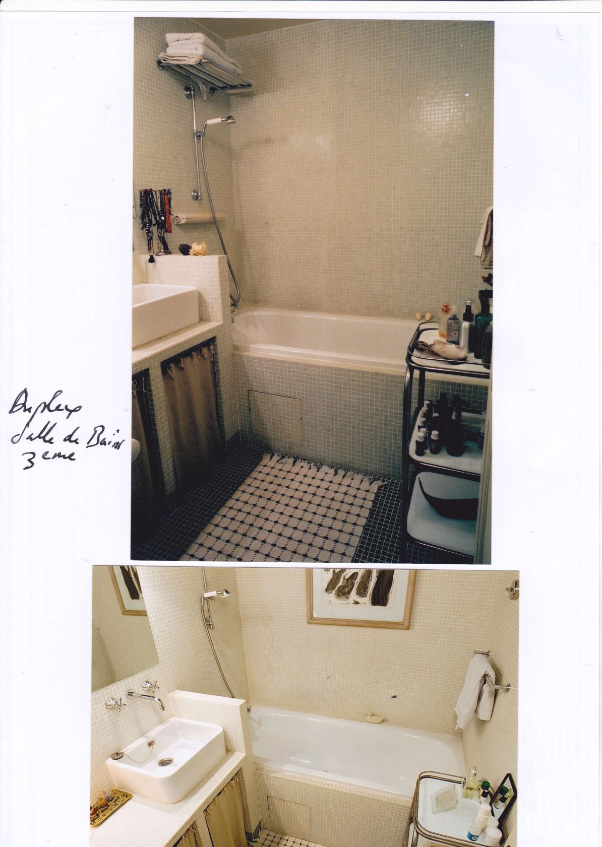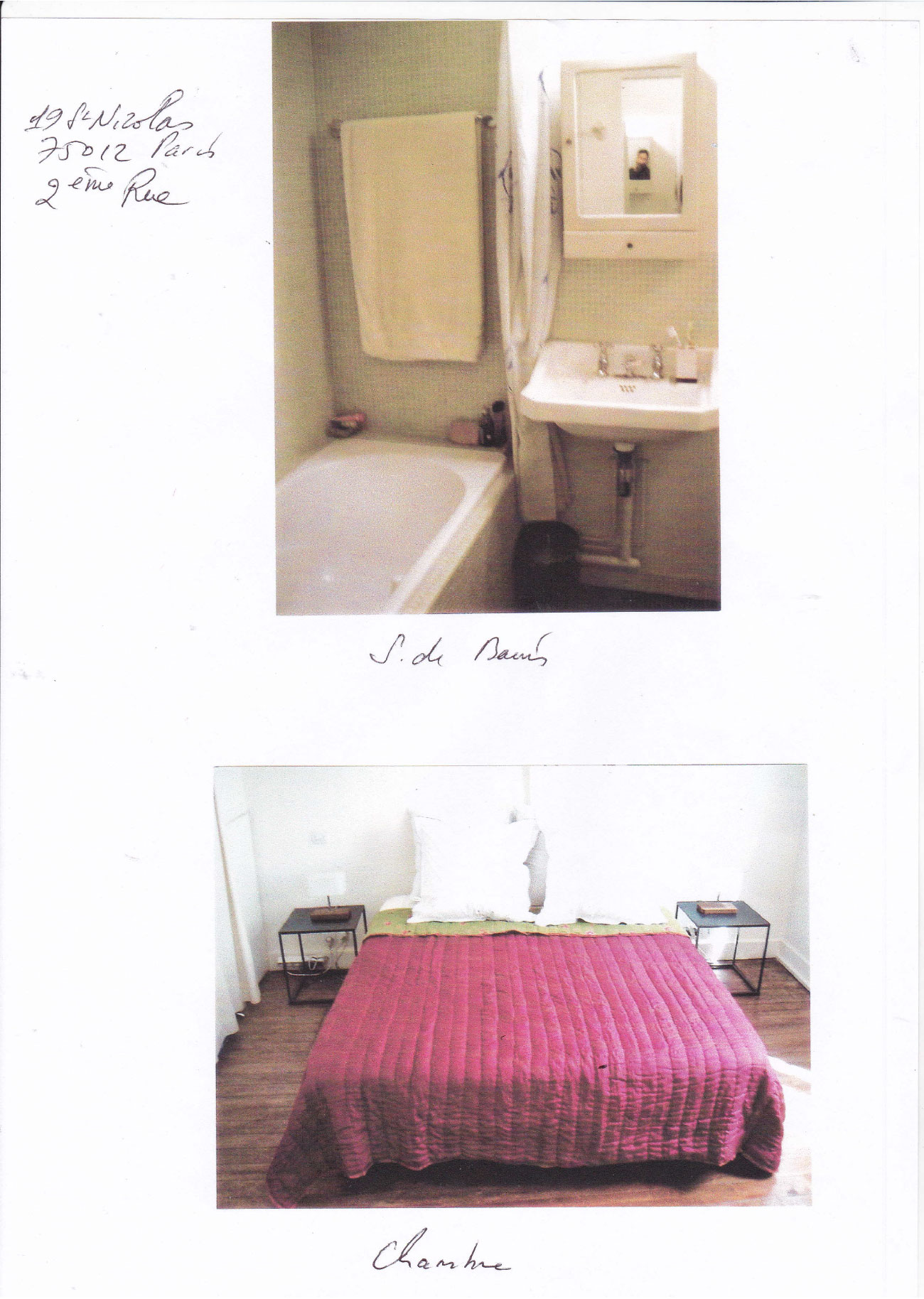 Le dossier commence par photos des lieux habités par l’arrivée au 4éme étage sur le palier transparent vers la cour fermée par son claustra métallique blanc, succèdent des photos du séjour/salon avec la terrasse et le bureau sur cour avec sa salle de douche et WC.