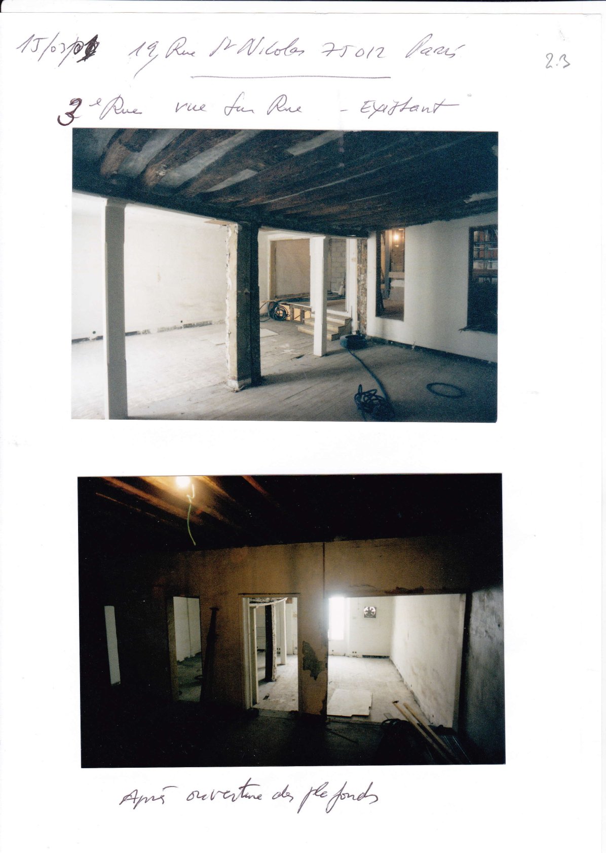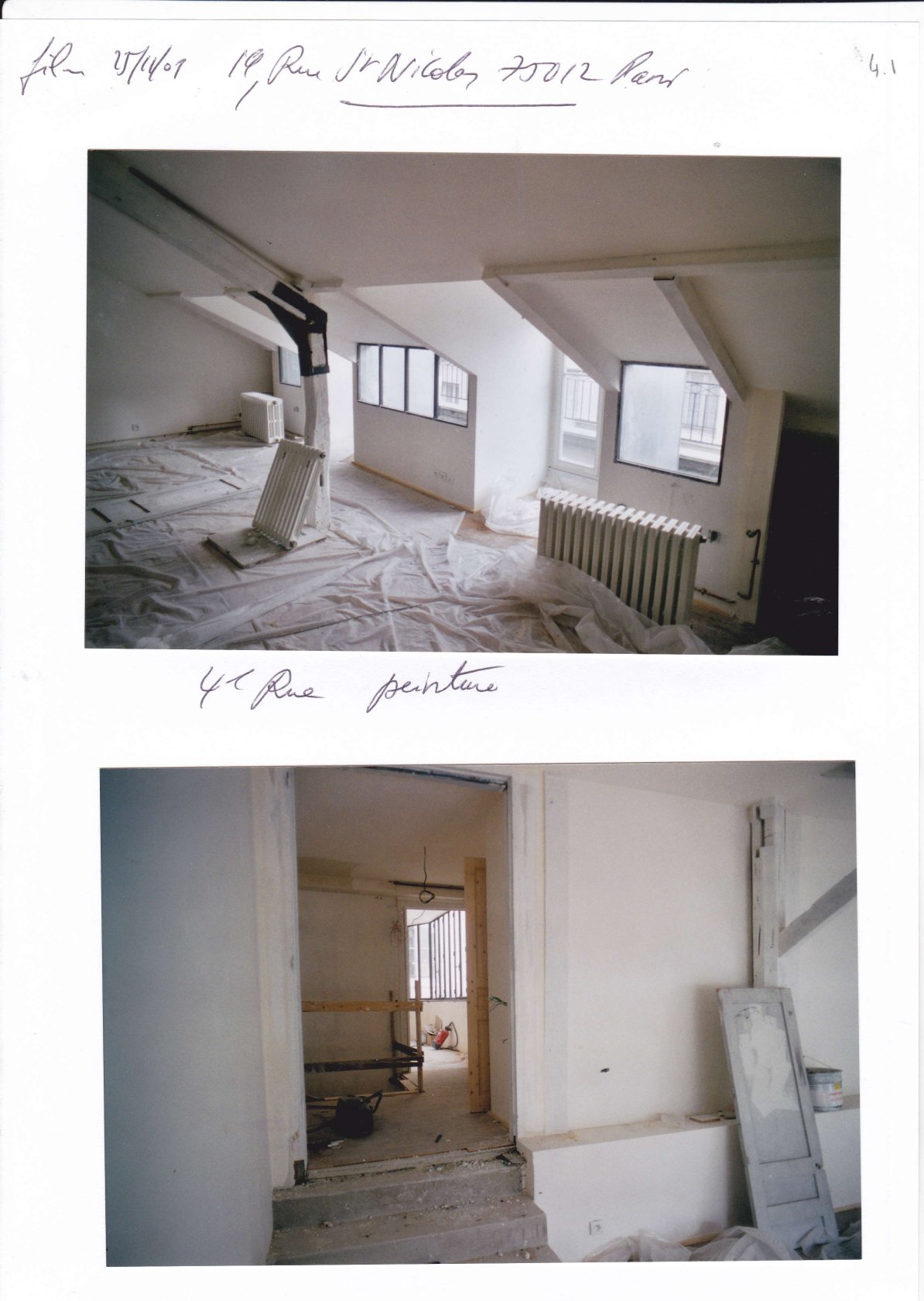 Cet appartement sur 2 niveaux est dans le programme de réhabilitation de l’immeuble décrit dans un autre dossier sur les travaux menés et notamment sur le rendu des parties communes.