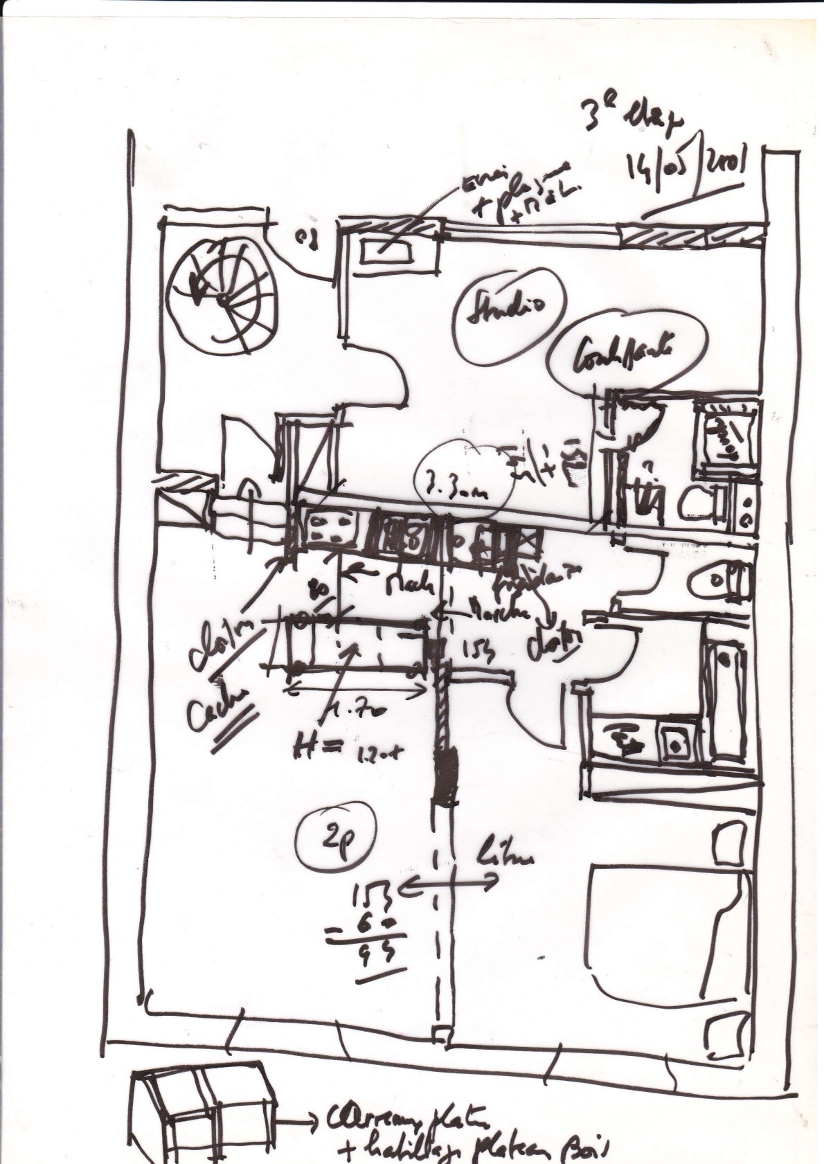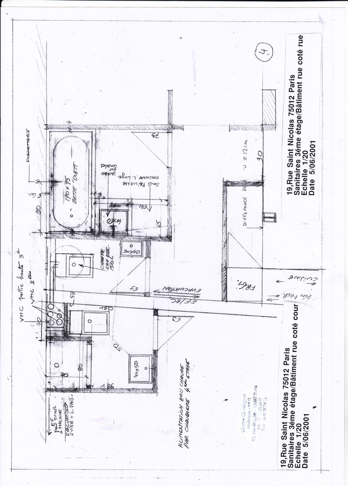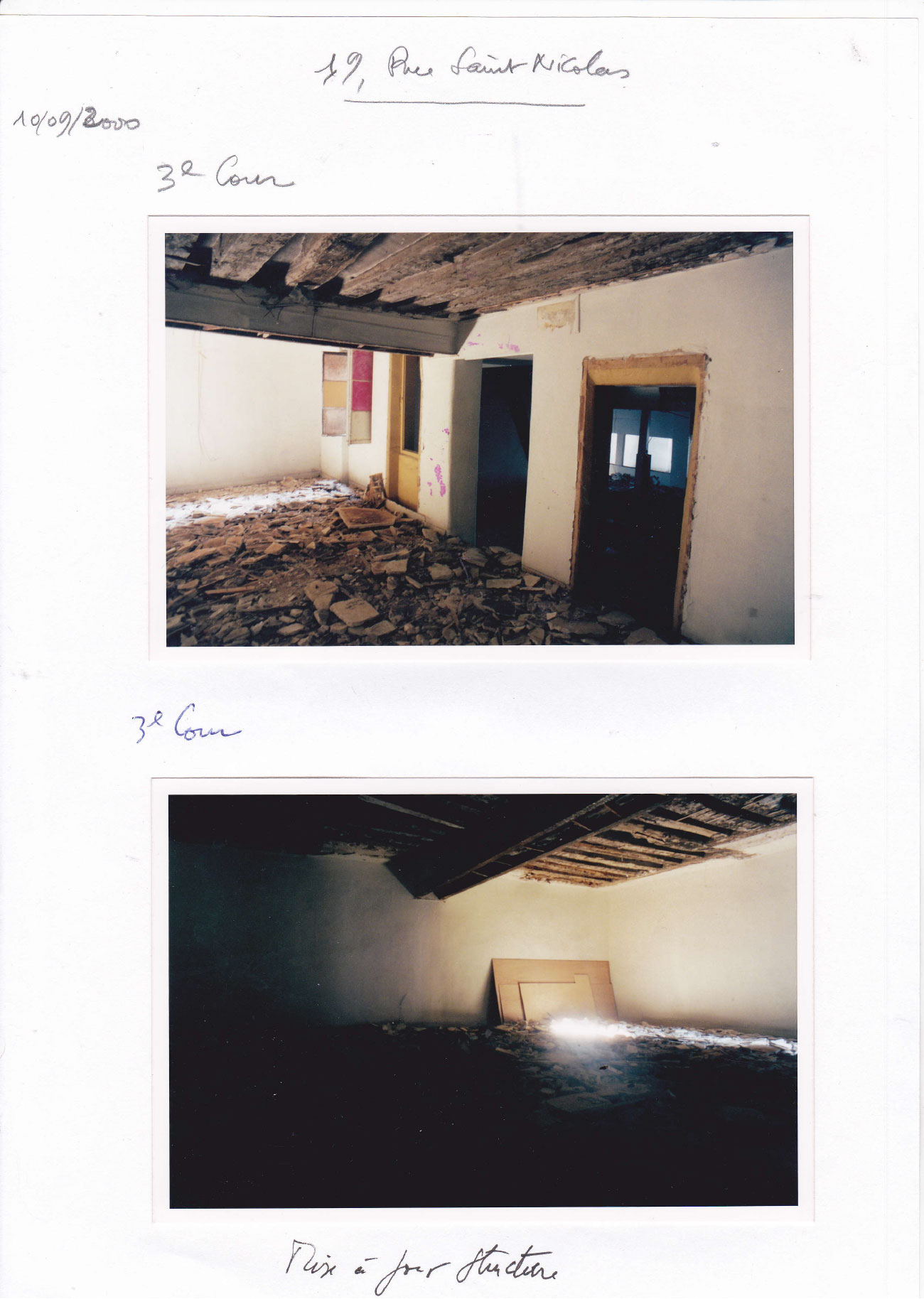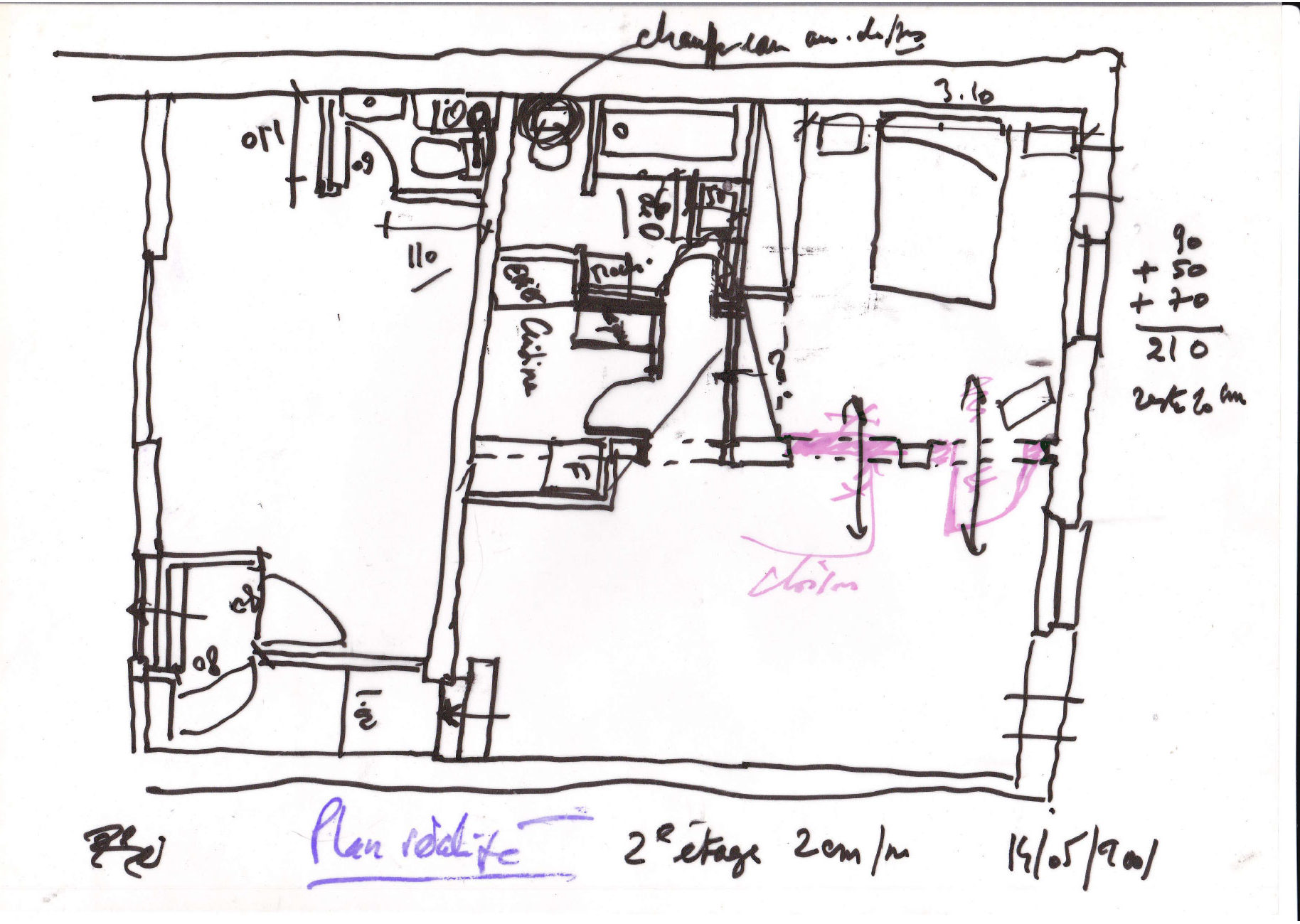 Au 3éme la salle à manger, cuisine, chambre et salle de bains pour s’achever après des documents graphiques sur l’état des lieux à l’origine et les étapes de la reconstruction.
