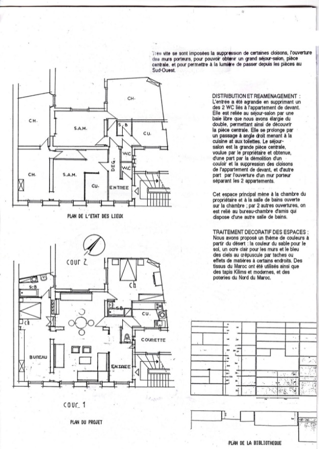 Le dossier comporte des planches de plans et photos et des croquis d’ambiance de certaines parties de l’appartement.