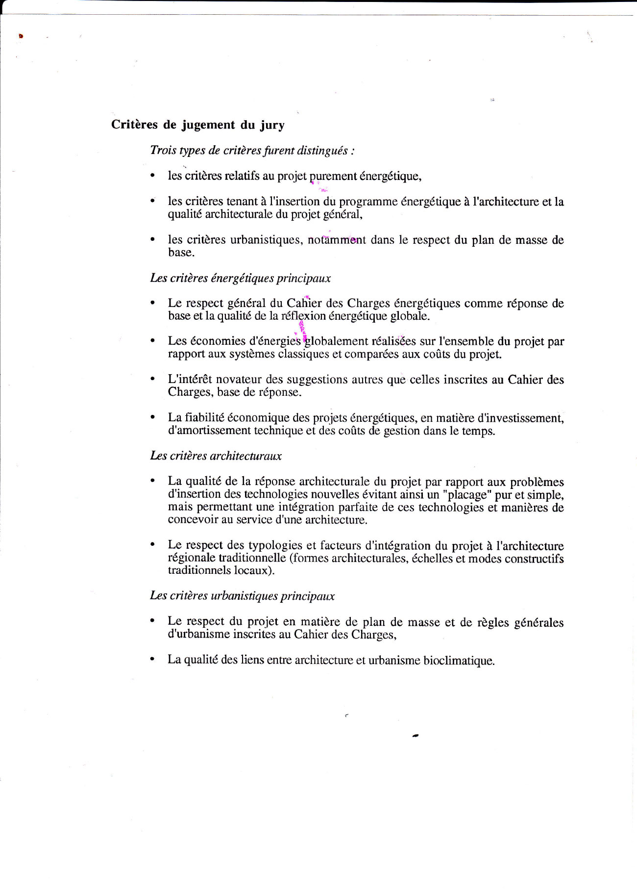 Ce concours d’architecture devait apporter dans sa Réponse des solutions innovantes sur la Consommation du quartier de logements, de l’école Primaire et de la maison de quartier qui forment l’objet du concours. Il fallait pour répondre une équipe mixte d’architectes et de Spécialistes de l’énergie solaire et de la thermique du Bâtiment.