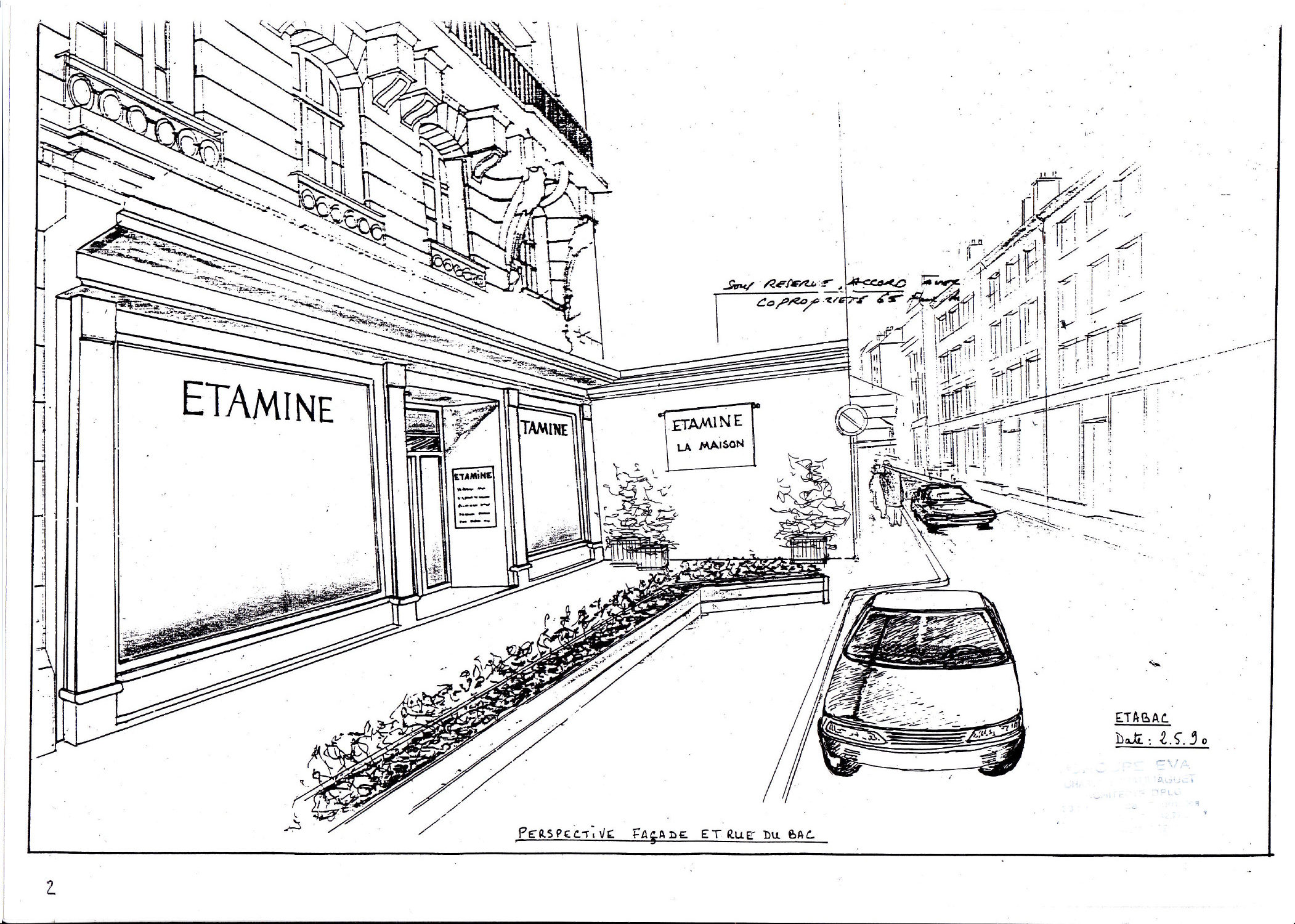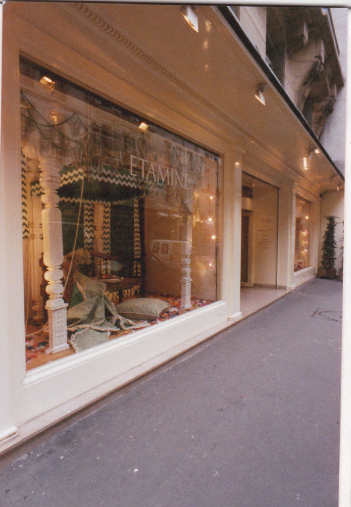 La marque ETAMINE Editrice de tissus et de papiers peints très connue en 1989/1990 décide de trouver un lieu pour ouvrir un espace de décoration sur la maison afin d’elargir son offre à de la vaisselle, des verres, canapés, etc en complément de ses propres éditions. Un local est trouvé Rue du Bac sur deux niveaux avec une surface de 400M2 à ré architecturer avec ascenseur et conditionnement d’air dans un temps très court -4mois.