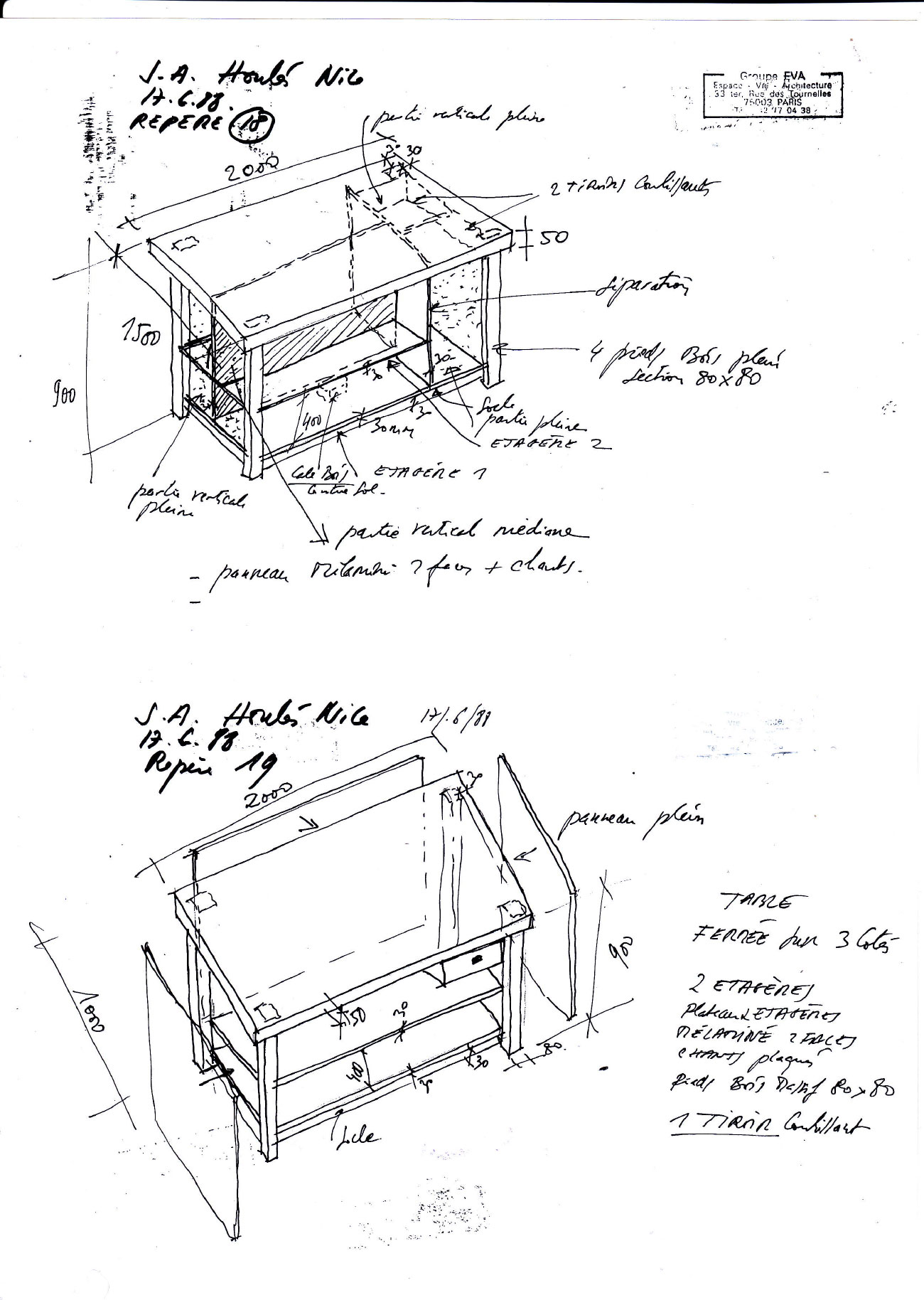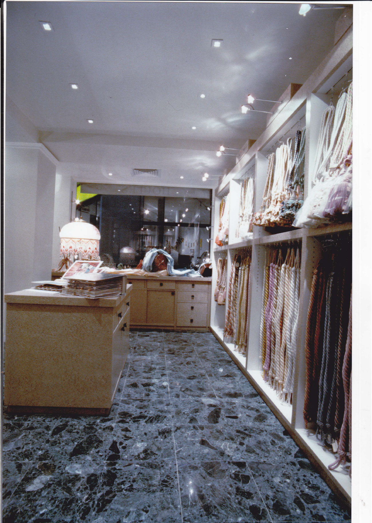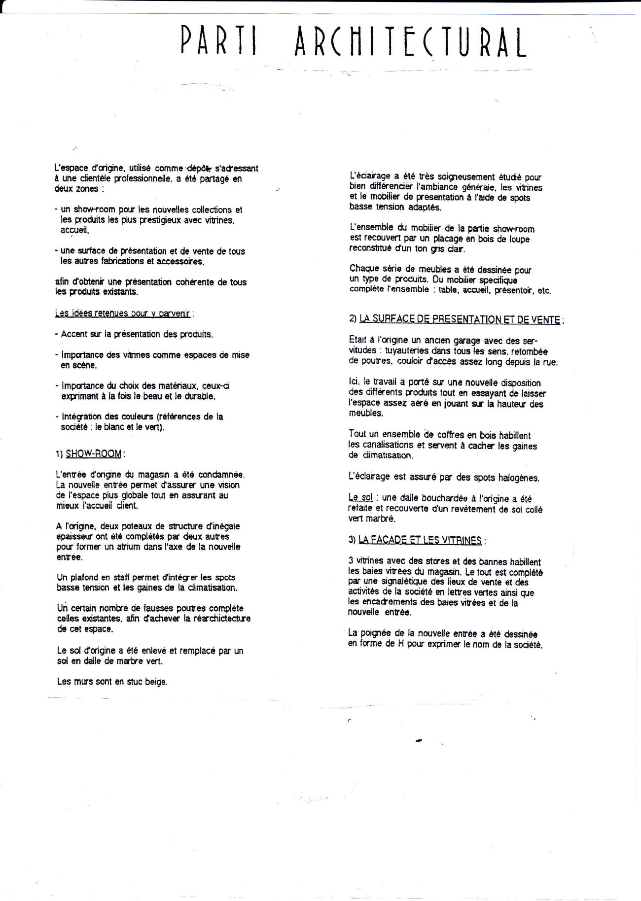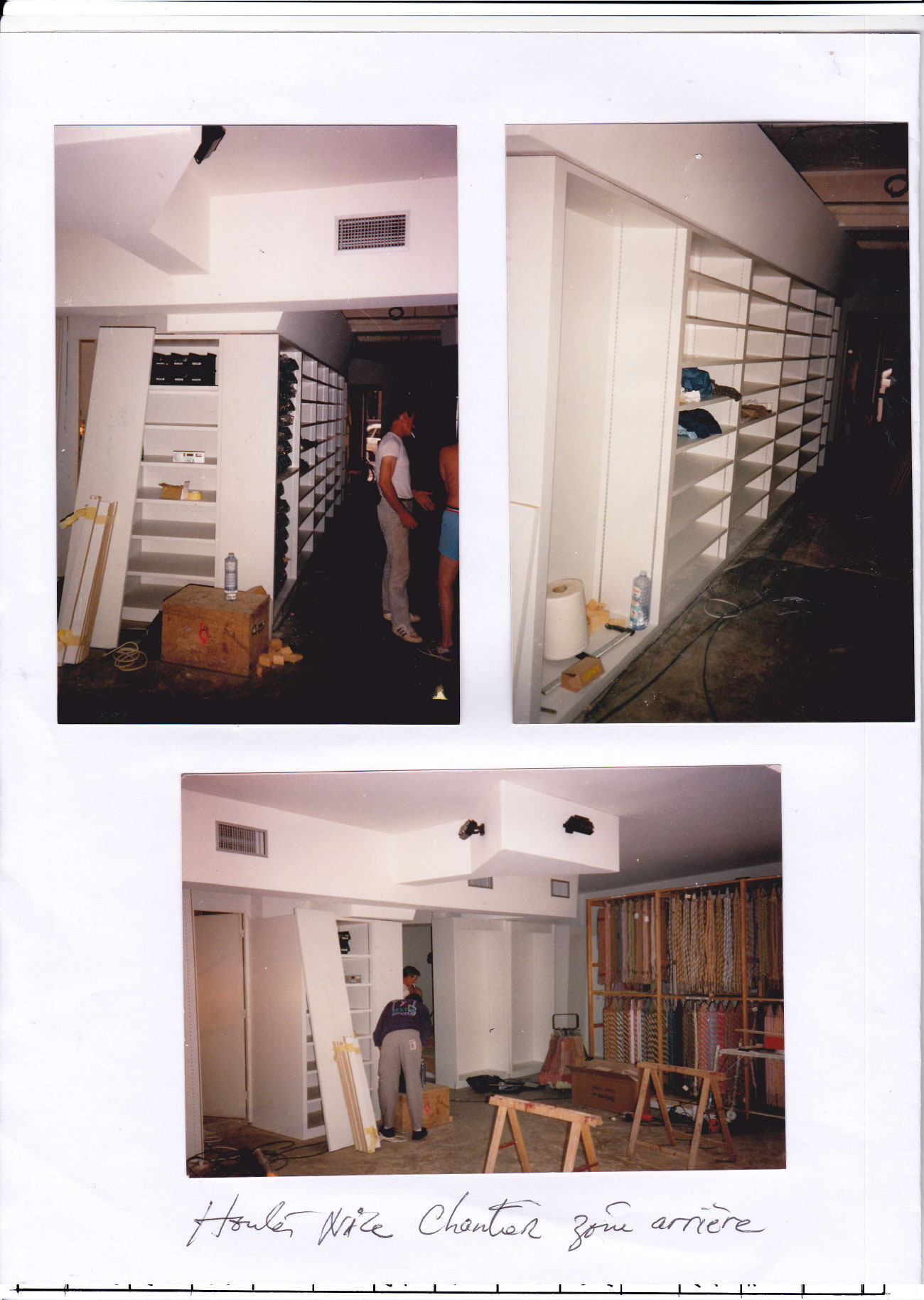 Après un voyage à Nice je leur propose 15 jours plus tard un projet lors d’une visite dans leurs bureaux implantés à Milly la Foret en lisière de la forêt de Fontainebleau. Nice devait être un magasin témoin pour refaire les autres en France. Il me charge immédiatement de faire meubles pour leur show-room à Paris. Après le chantier de Nice il m’est demandé un projet en esquisse de la transformation de leur show-room de New-York.