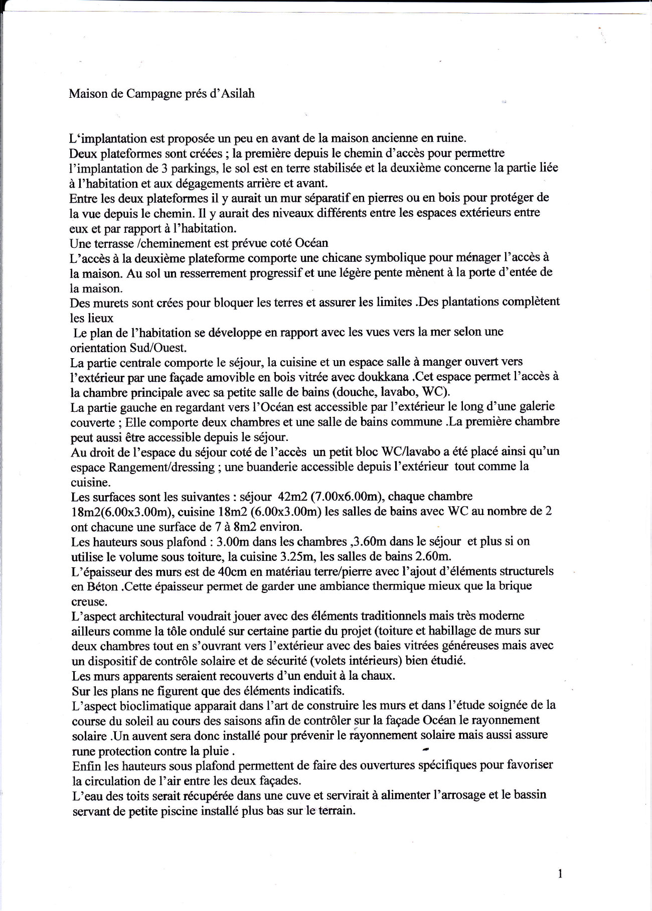 UNE AMIE DE LONGUE DATE VIVANT AU MAROC ME DEMANDE DE REGARDER UN AVANT PROJET POUR SES JEUNES CLIENTS DE CASABLANCA QUI VOULAIENT UNE MAISON DANS LA CAMPAGNE D’ASILAH.