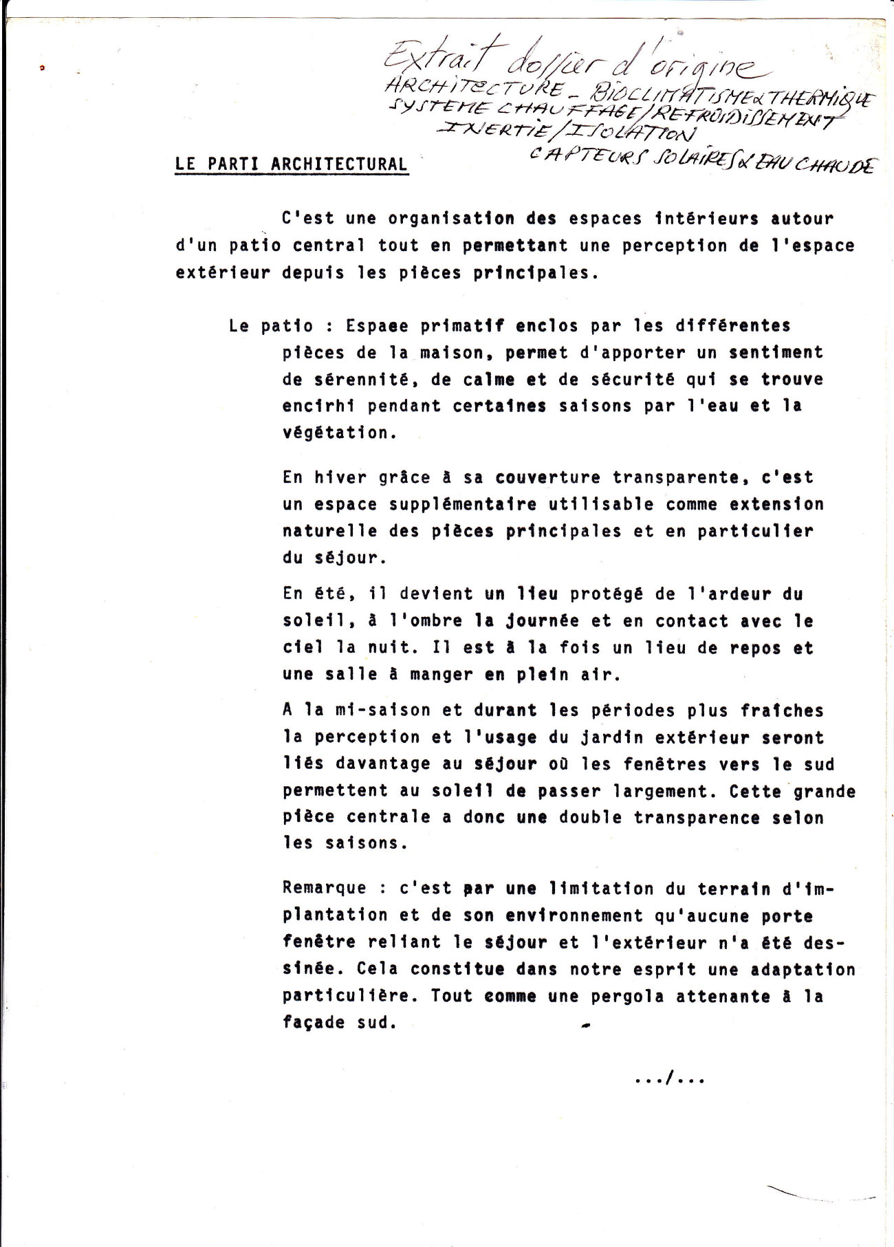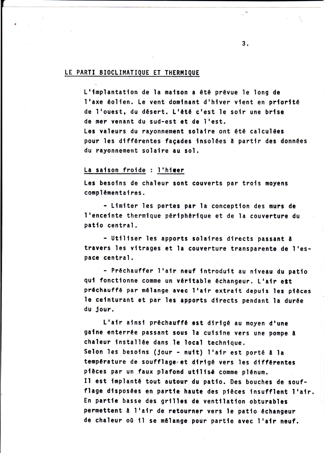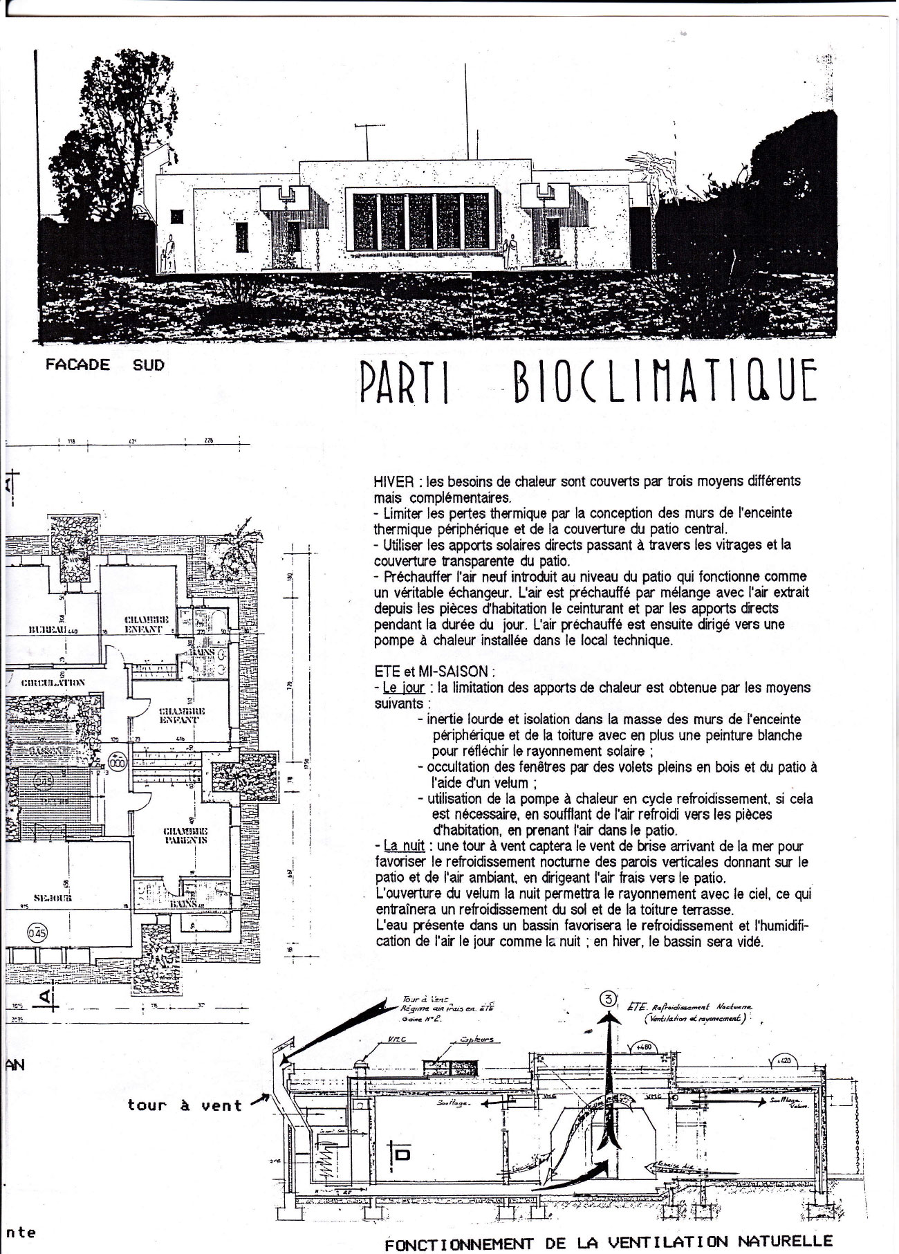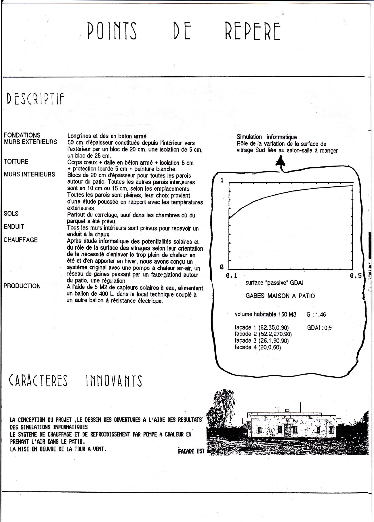 Une étude informatique a permis de dimensionner les surfaces de vitrage et de mesurer le rôle des apports passifs dans les bilans en période froide.