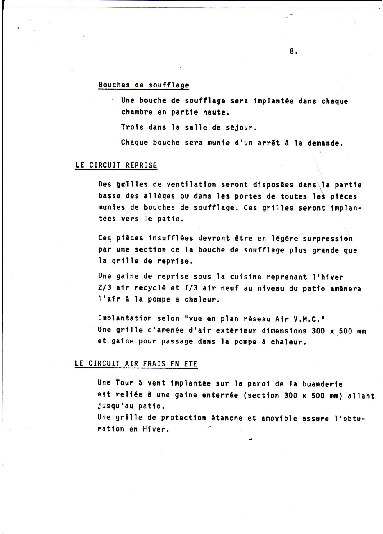 Les volumes à maintenir en température, hors patio, sont de 500 m3 en été. Ils augmentent en hiver par la couverture du patio au moyen d’une peau transparente et sont portés à 700 m3.