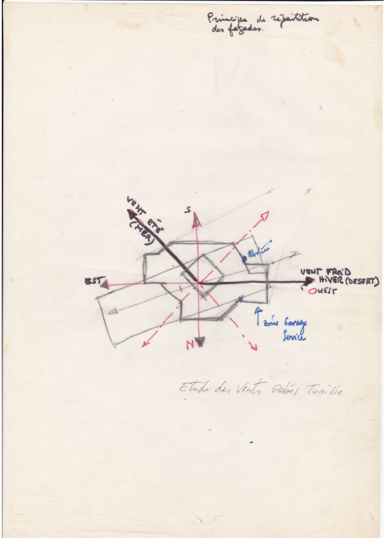 Il s’agit d’un projet étudié en 1979 à la demande de la société Elf (aujourd’hui Total )près du Terminal La Skira près de Gabès, dans le Sud Tunisien, avec une conception thermique devant répondre aux problèmes de l’hiver, même court, et de l’été. Le climat est celui des zones arides, tempéré par la face maritime.