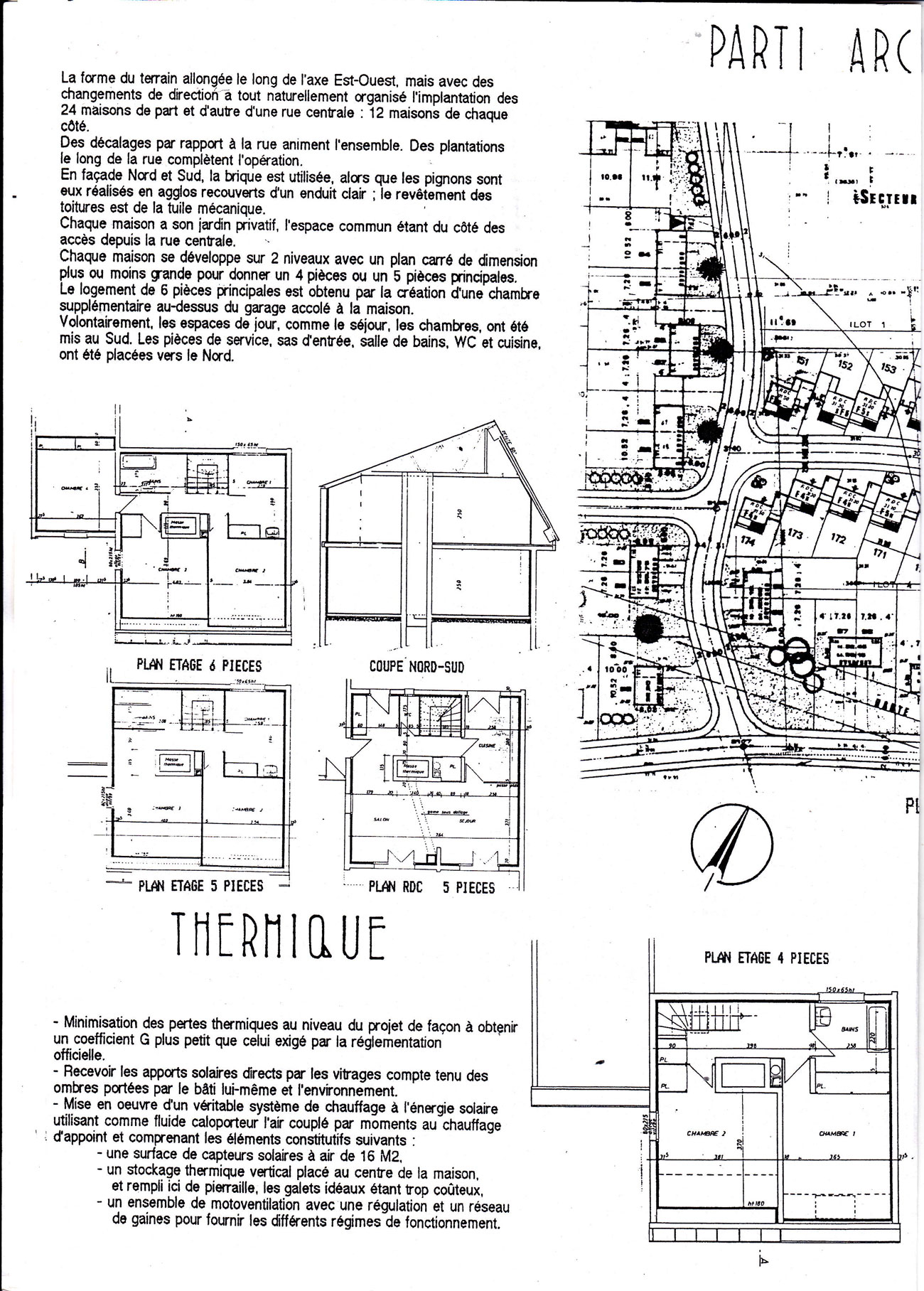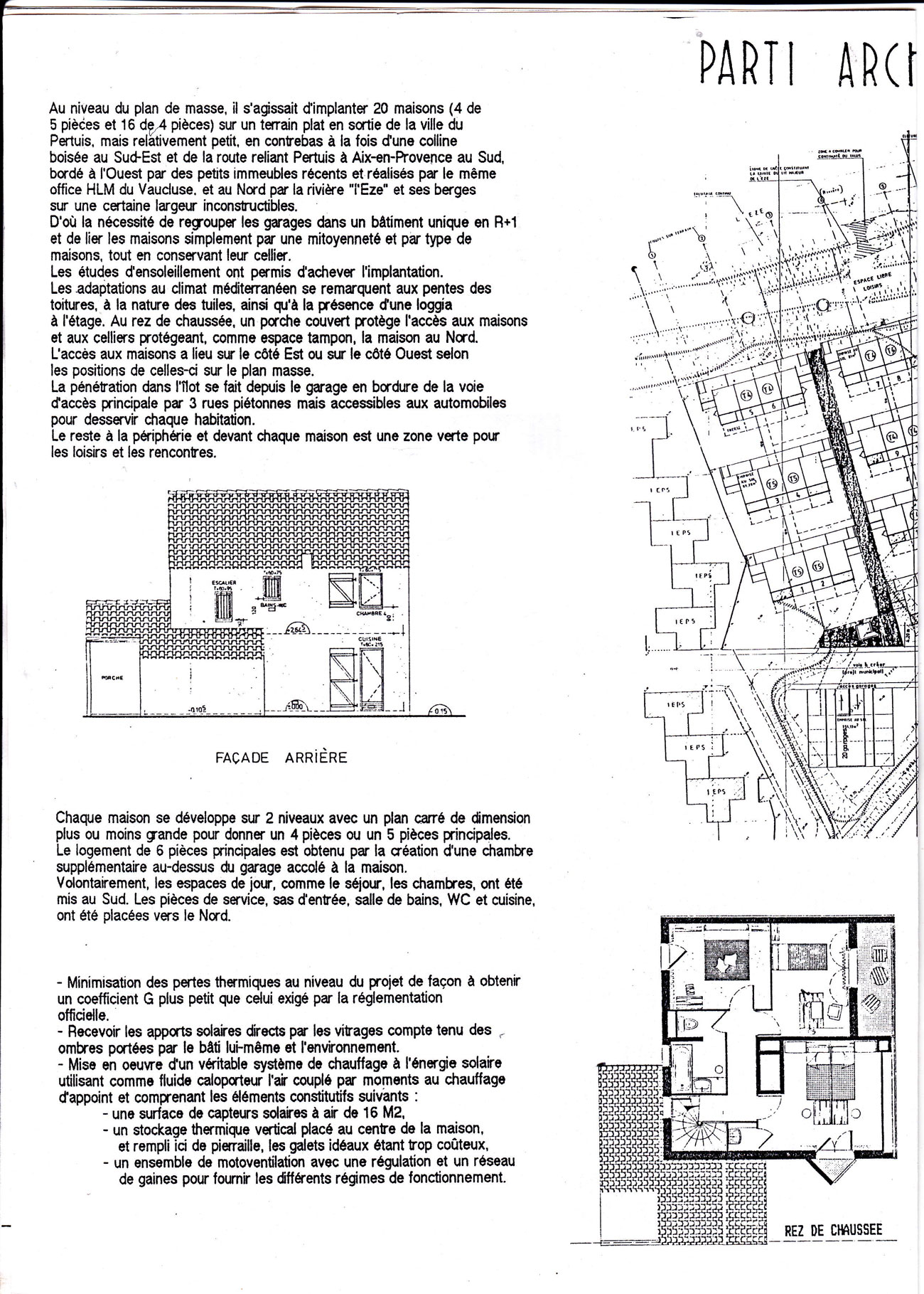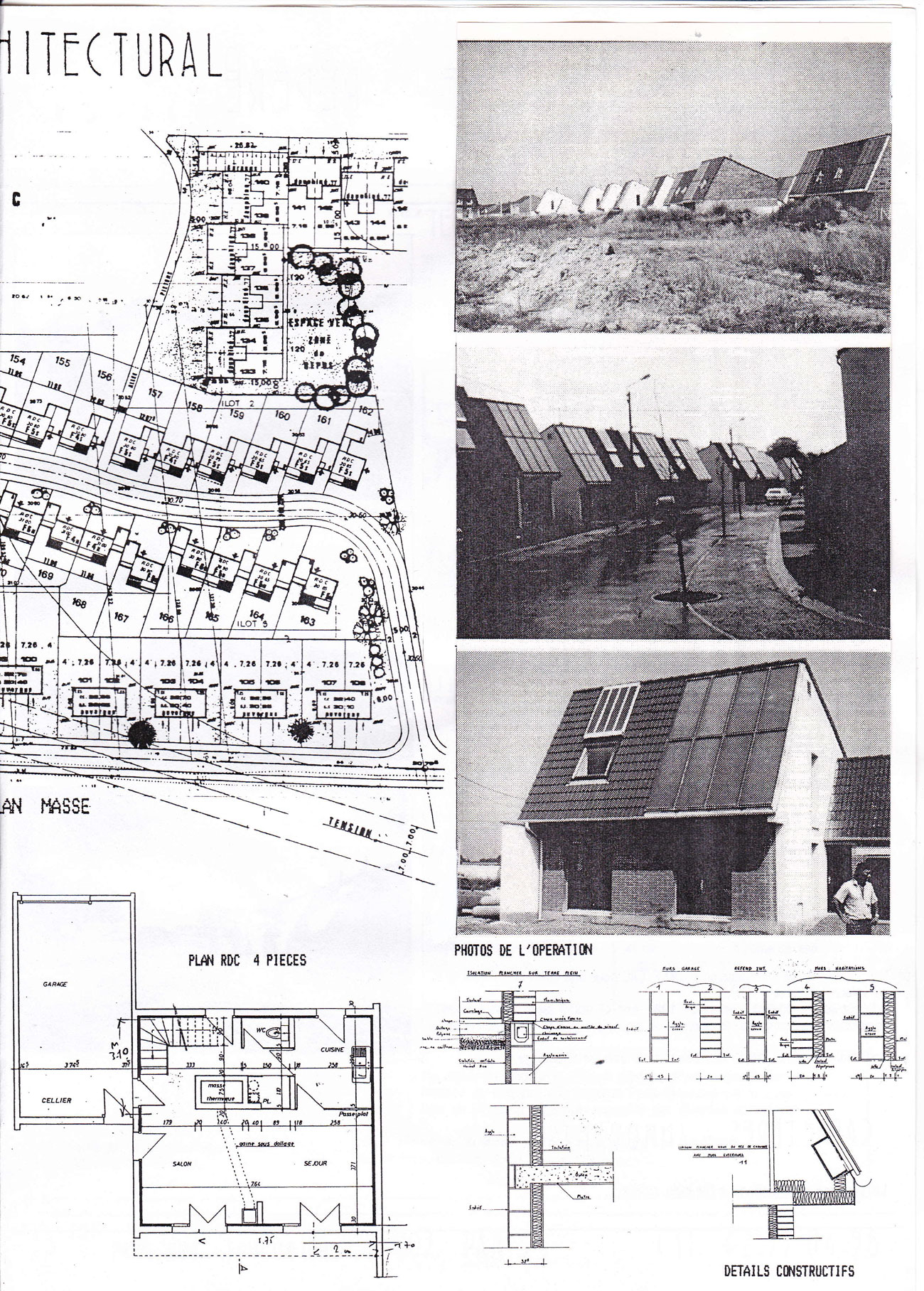 Encore à faire mes études d’architecture j’agis pour valider toute la partie thermique du projet et les évaluations des apports solaires et du système solaire où fut utilisé le logiciel CASAMO sur les 3 zones climatiques en France et intervenir sur le plan masse pour implanter les différentes maisons, aller observer la réalisation des projets .