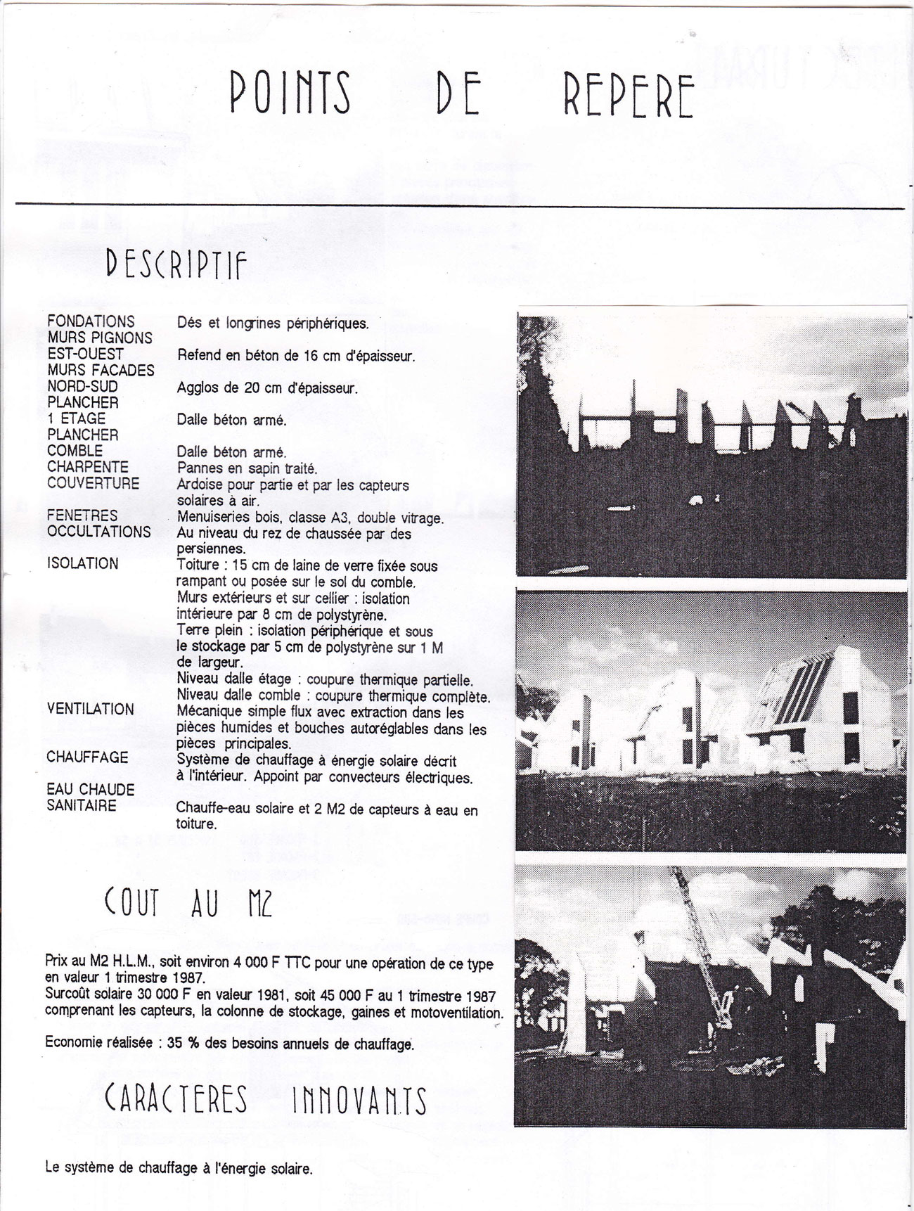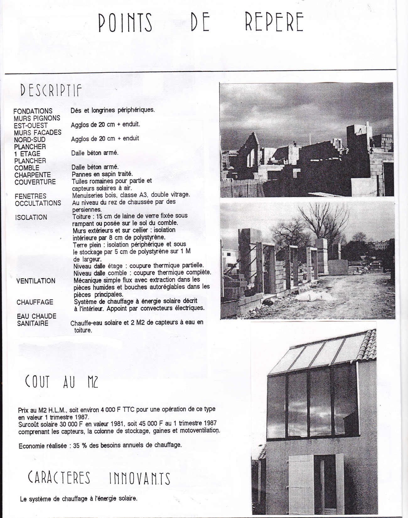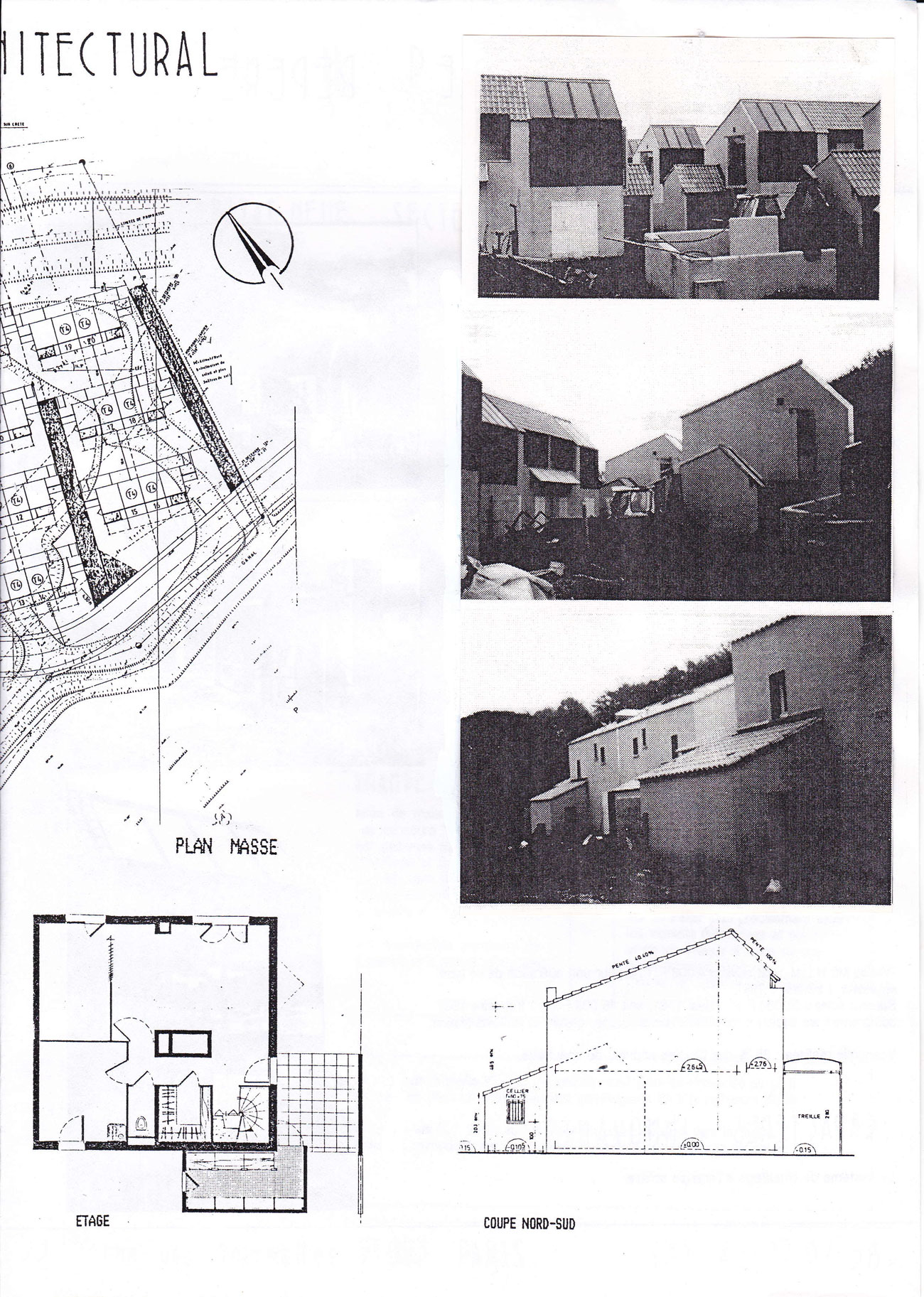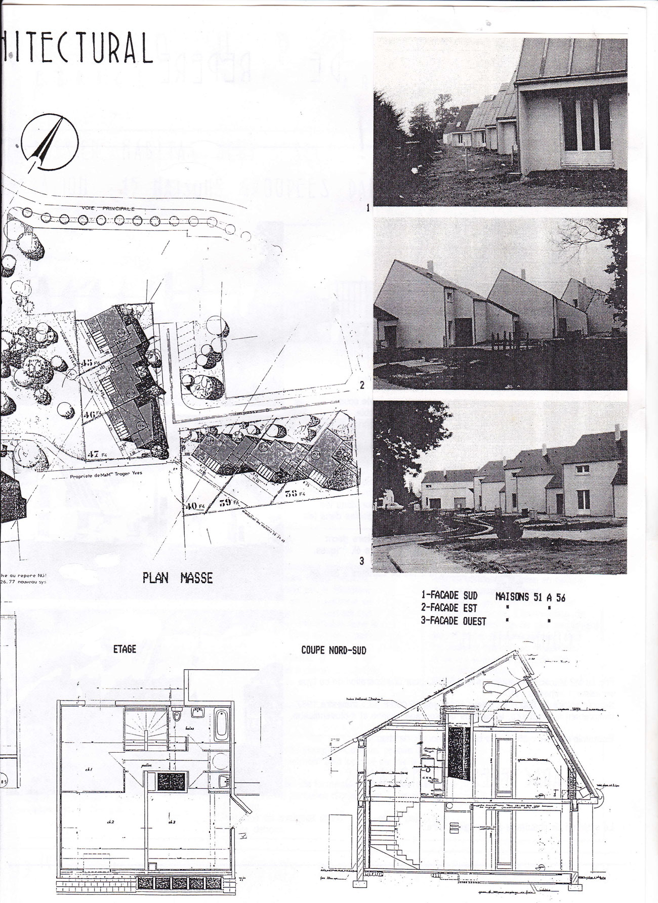 Encore à faire mes études d’architecture j’agis pour valider toute la partie thermique du projet et les évaluations des apports solaires et du système solaire où fut utilisé le logiciel CASAMO sur les 3 zones climatiques en France et intervenir sur le plan masse pour implanter les différentes maisons, aller observer la réalisation des projets .