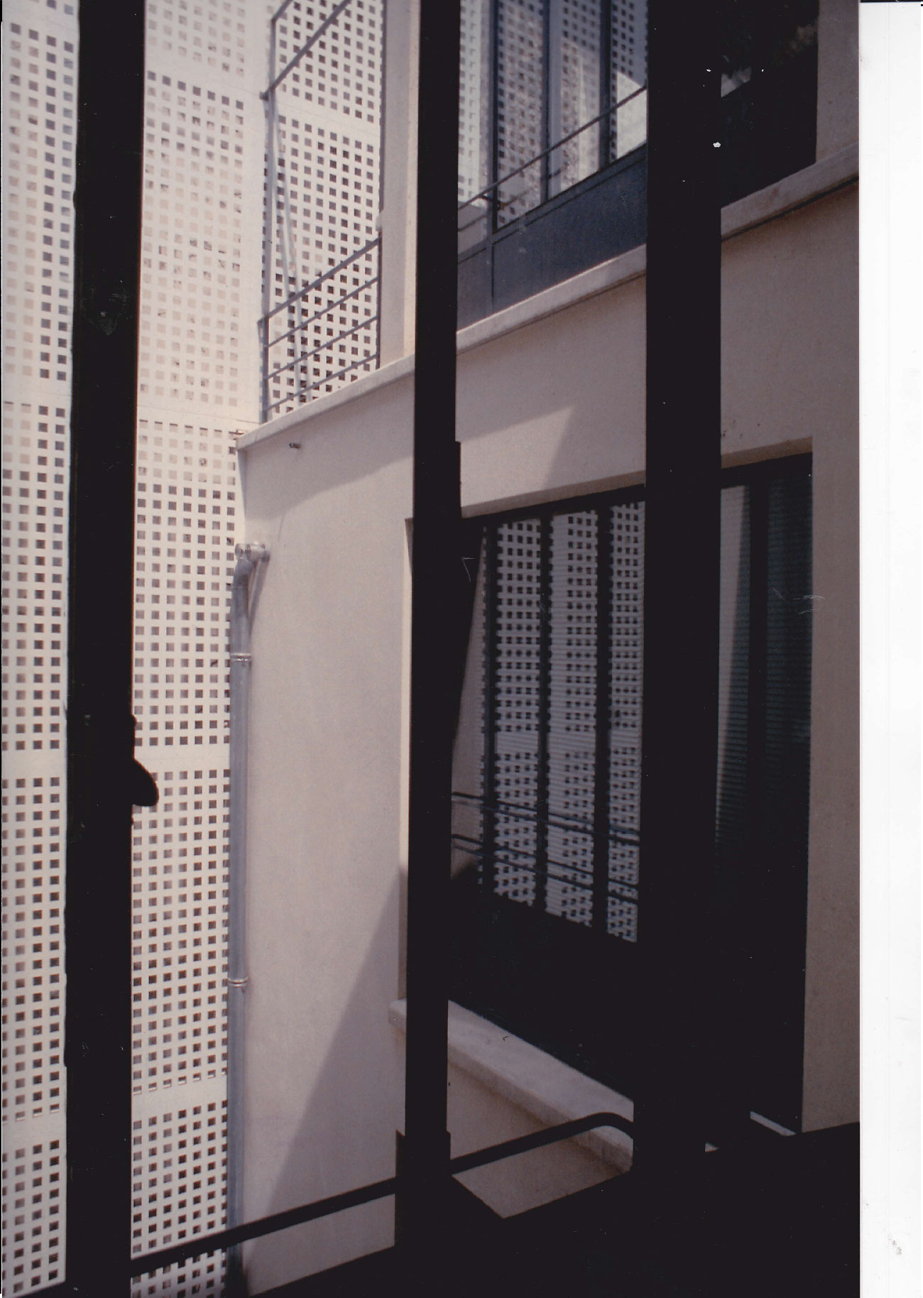 Le claustra séparatif avec la copropriété voisine évite une chute d’objets sur la verrière et par sa couleur assure une meilleure luminosité.