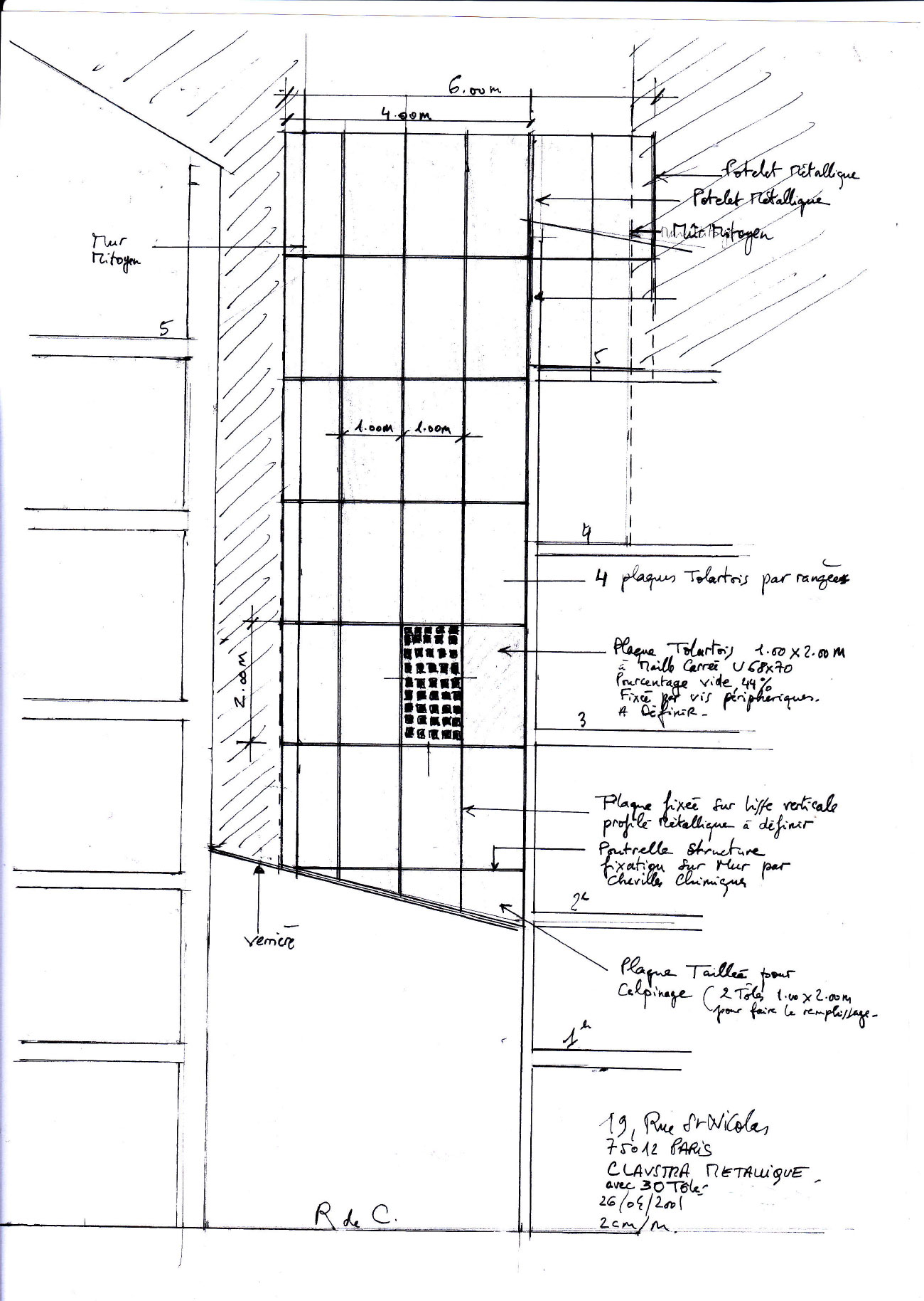 Après de nombreuses recherches pour trouver une entreprise de maçonnerie sans succès un ami m’adressa un maçon italien avec qui nous pûmes démarrer en Septembre 2001 complété par une entreprise de charpente métallique et serrurerie que je trouvais sur un chantier voisin.