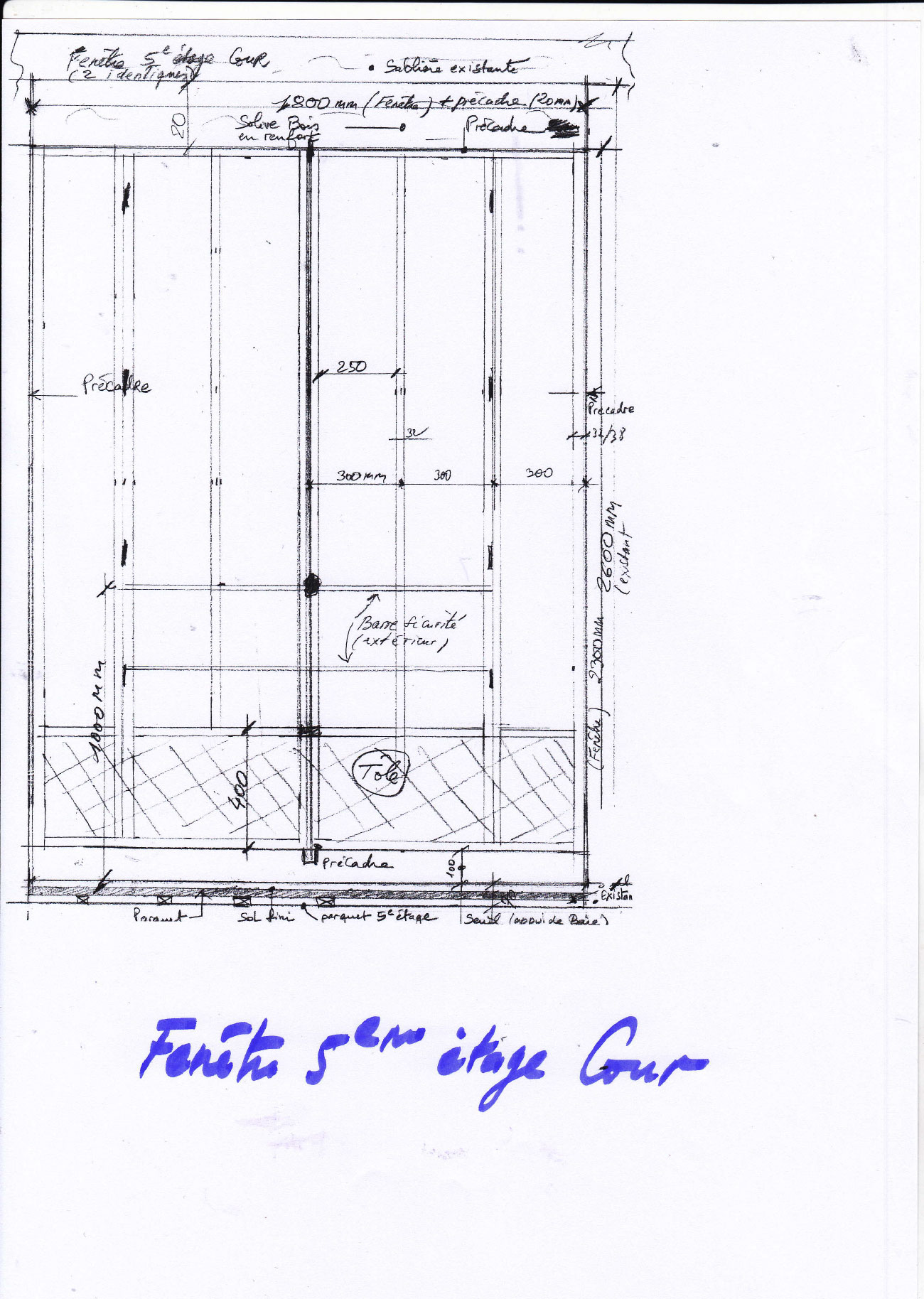 Les autres fenêtres sont en bois de chêne avec double vitrage Le ravalement en plâtre projeté à la pompe sur cour a été réalisé en installant un échafaudage complet.
