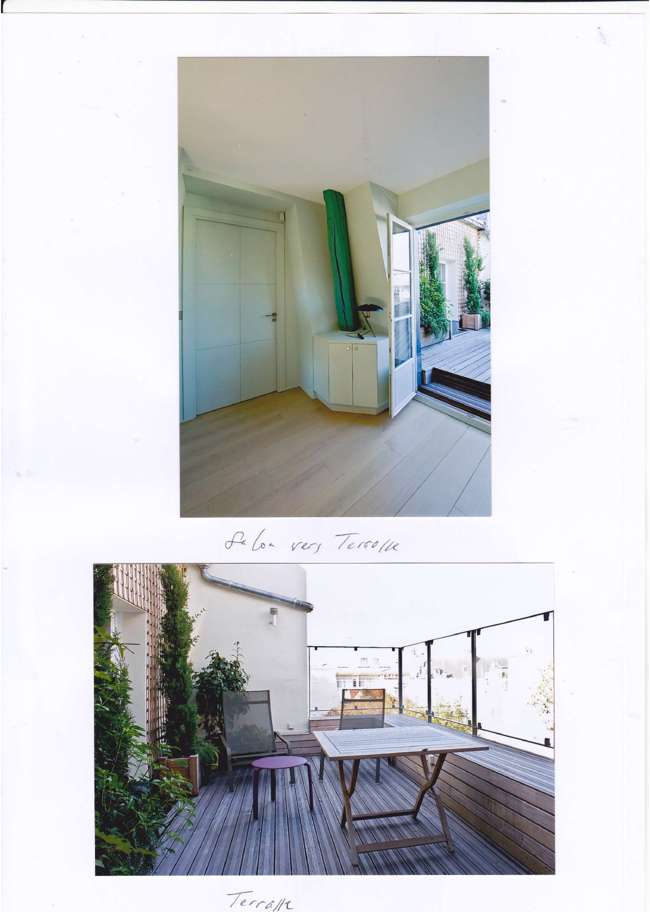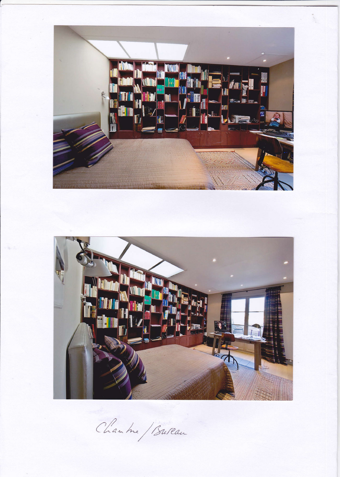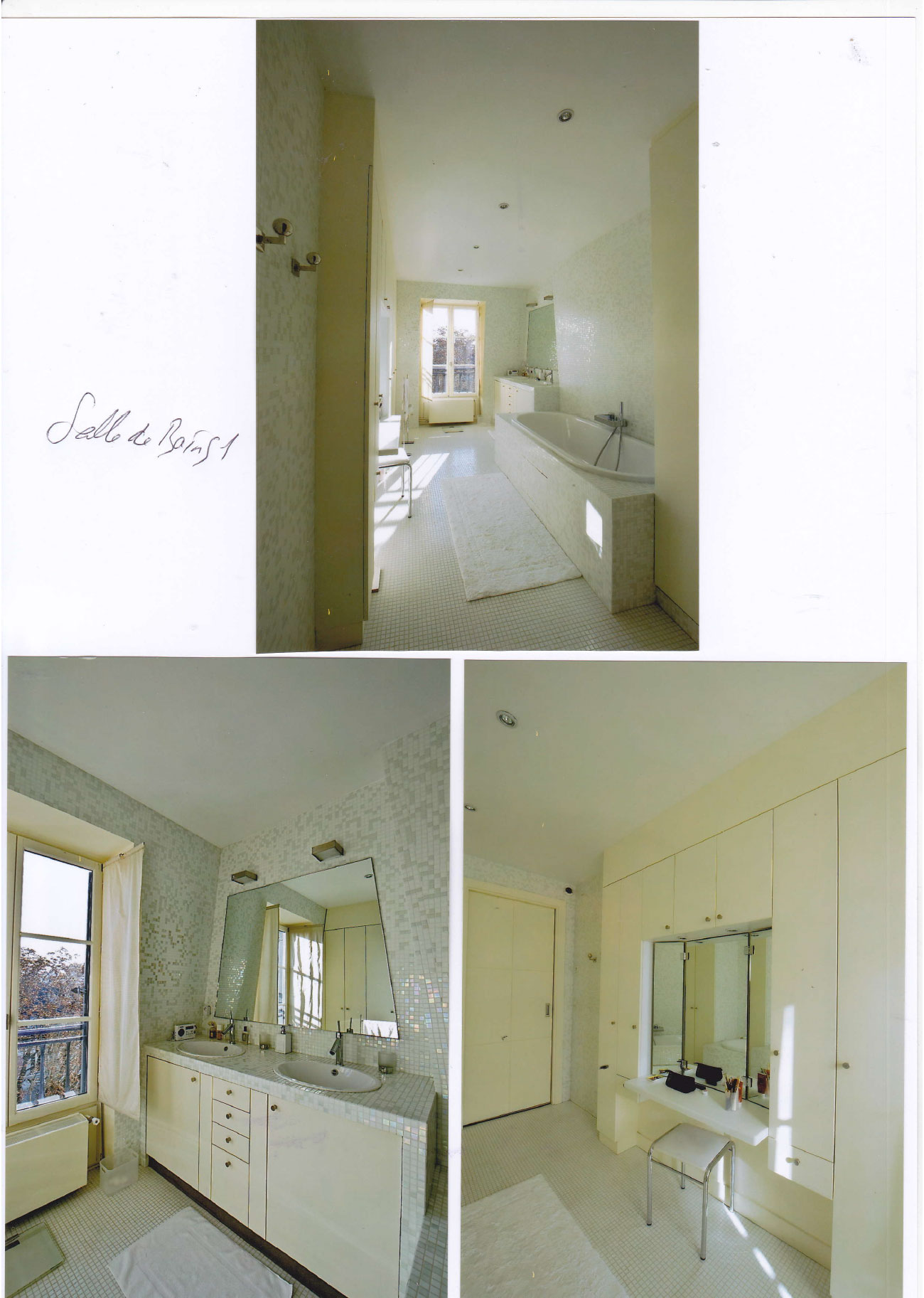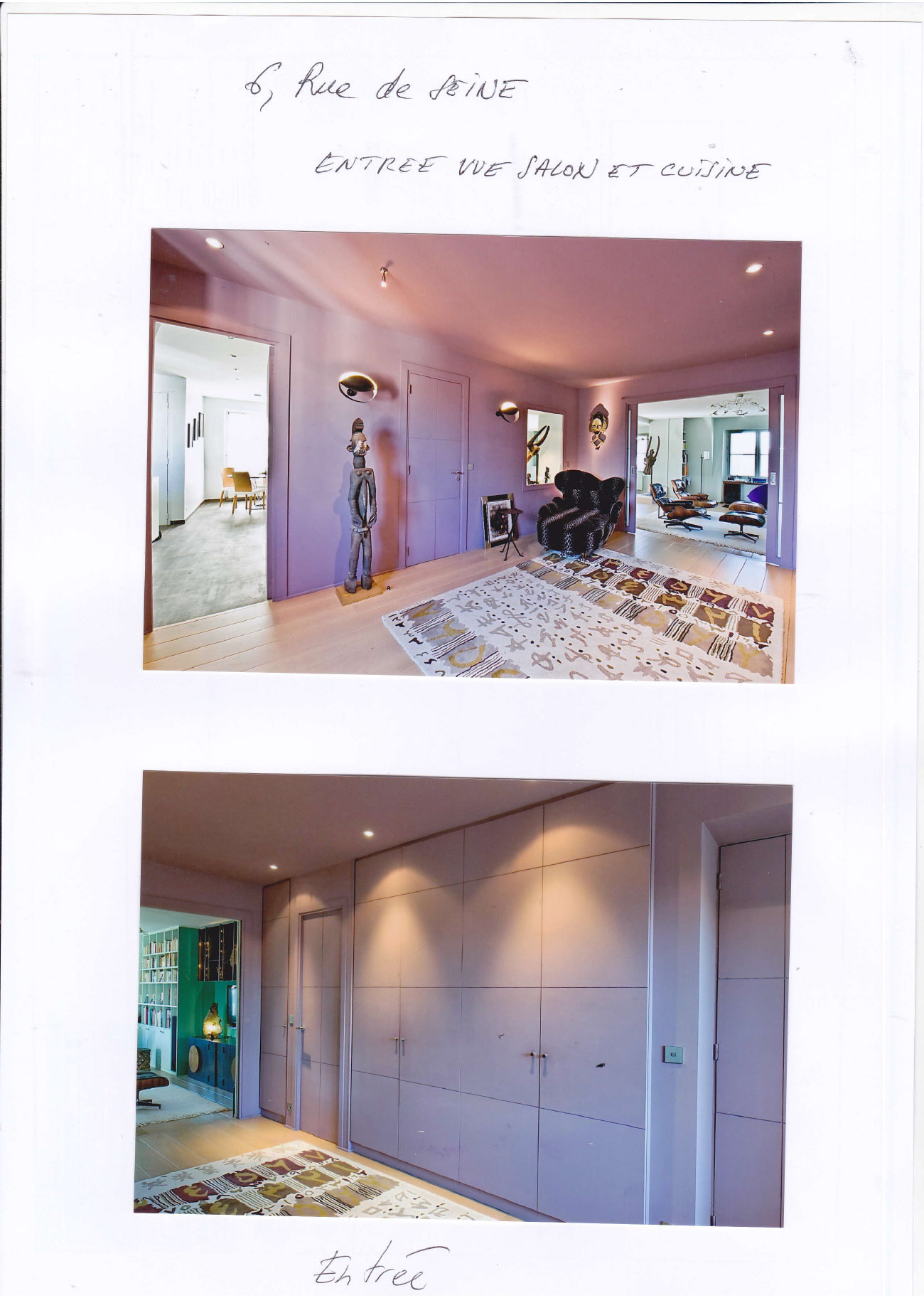 Je me rappelle précisément le moyen d’évacuer les eaux vannes du WC existant de l’entrée pour rejoindre un autre coté ,sans descente collective, se jetait dans la gouttière !(d’où au départ une partie du plancher de la cuisine existante surélevé ),des conduits de cheminées des étages inférieurs à repérer et démolir après accord des copropriétaires tout çà avec des essais fumigènes Puis sur le plan structure des reprises importantes dans les poutres du séjour par des renforts métalliques et surtout la suppression d’un mur porteur entre salon et petit salon où il n y a pas de retombées entre les 2 pièces grâce à une solution de l’entreprise de charpente que je ne connaissais pas .Le résultat est qu’il n’y a aucune différence entre les pièces ,ce qui entraîne un bel espace où l’œil n’est pas arrêté et aussi pour le souvenir le traitement du sol en acoustique vis-à-vis du propriétaire de l’étage en-dessous avec coulage d’une chape liquide depuis la préparation dans la cour et avec pompe et tuyau dans l’escalier de service pour réaliser le travail .